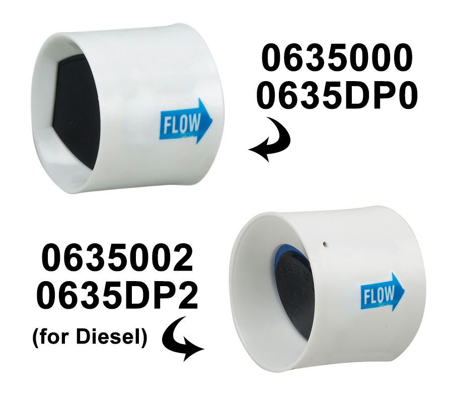 Catalog No. Hose Connection Width Inches Dealer Pkg. OEM Bulk Pkg. Shipping Weight Lbs. 0635DP0 1-1/2 1-9/16 Dia. 5 --- 0.6 0635000 1-1/2 1-9/16 Dia. --- 25 2.0 0635DP2 (for Diesel) 2 1-15/16 Dia. 5 --- 1.0 0635002 (for Diesel) 2 1-15/16 Dia. --- 25 2.5