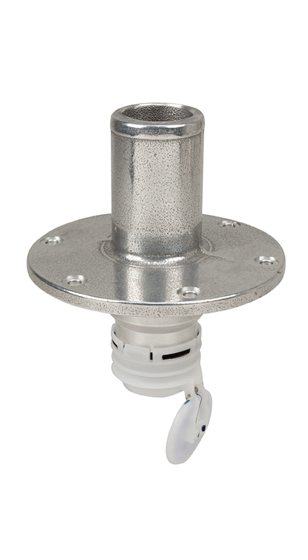 ICVs are used to help prevent wellback (the reverse flow of fuel out the fill after refueling is completed) & spitback. These normally closed valves are opened by the presence of fuel running down the fill pipe during refueling. All Perko inlet check valves are designed to handle incoming fuel flows in excess of 18 gallons per minute. Inlet check valves can be tank mounted or inserted into the fill pipe. Mounting options for tank mounted ICVs include flanged (for plastic tanks), threaded or welded (for metal tanks) and swivel (for both plastic and metal tanks)
